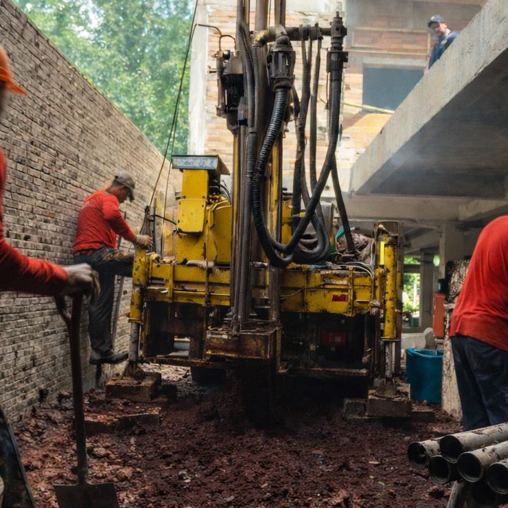 Logística limpia: En espacios reducidos, la gestión de los sedimentos y el lodo de perforación debe ser mucho más controlada para no ensuciar toda la propiedad.